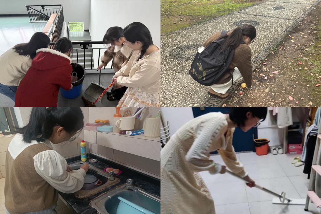 同时,各班级组织同学们开展了“大扫除”活动。同学们分成多个小组,从寝室、教室到校园公共区域,大家分工合作、井然有序,用实际行动美化了校园环境,并传承了劳动精神的真谛。