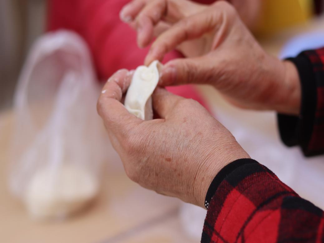 在饺子DIY环节,志愿者和服务站为居民们提供了饺子皮、馅料及包饺子工具,并热情邀请居民参与包饺子。居民们纷纷动手尝试,现场欢声笑语不断。幸运饺子环节更是将气氛推向高潮,志愿者们邀请外卖小哥现场吃饺子,吃到有硬币饺子的小哥可获得卡丁车体验券,这一环节不仅增添了趣味性,也让新就业群体感受到了社区的温暖与关怀。包饺子PK赛是此次活动的另一大亮点,志愿者们设置了趣味游戏,以2分钟内包最多最美观饺子为胜出标准,获胜者可获得街道牙健康机构的洁牙卡一张。居民们热情高涨,纷纷加入PK赛,争取赢得奖品。志愿者们在一旁维持秩序,确保比赛公平公正进行。