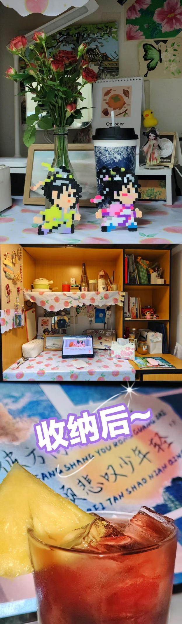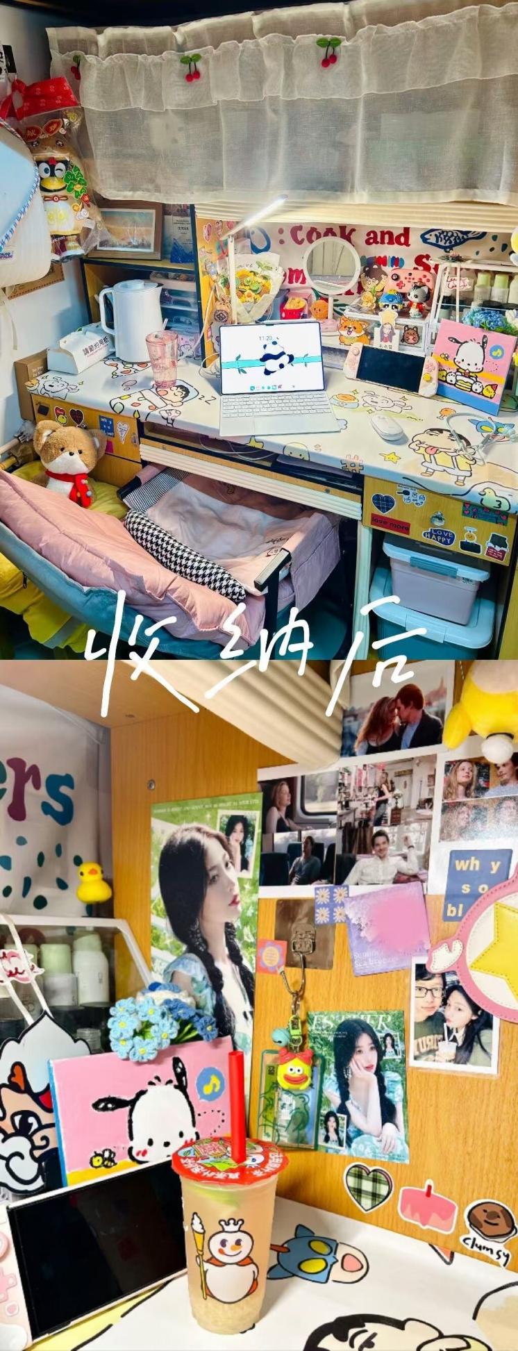 “绝‘室’无双收纳小能手培训分为了两个赛道。收纳技巧学习赛道通过公众号推送收纳技巧、实用物品推荐和达人专访,开展了为期7天的培训,并要求参赛寝室提交学习前后对比图及收纳过程展示。参赛寝室深入学习了各类收纳方法:从衣物的分类折叠到各类物品的合理摆放,从衣柜空间的巧妙规划到书桌区域的高效利用,除此之外,还可以根据物品的使用频率、类别和大小进行分类整理,如将常用物品放置在易于拿取的位置,将衣物按照季节、类型进行细致划分,使得寝室空间的利用更加科学合理。这种知识的积累和实践的应用,不仅让寝室环境变得整洁有序,焕然一新,还提升员工收纳能力,切身参与到了劳动教育实践中来。
