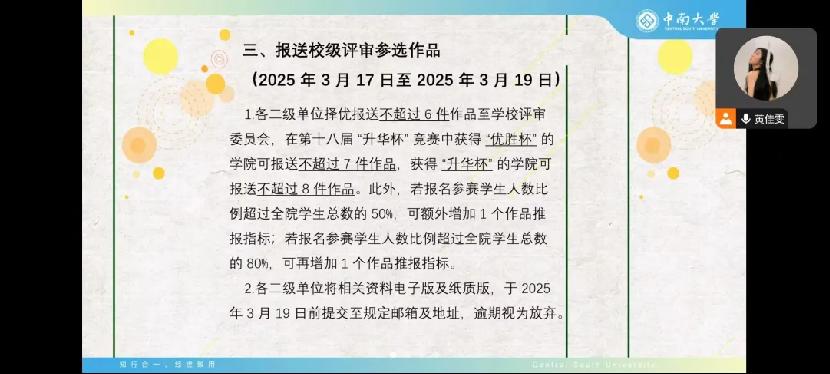 2025年1月15日晚上8时,公司举办伟德中国官网入口第十九届“升华杯”老员工课外学术科技作品竞赛线上动员宣讲会。会议邀请了优秀项目负责人分享比赛经验,旨在深化同学们对“升华杯”竞赛的理解,为同学们提供参赛经验和备赛指导。会议由公司分团委科实部主持,院分团委书记梁慧和员工代表20余人参会。