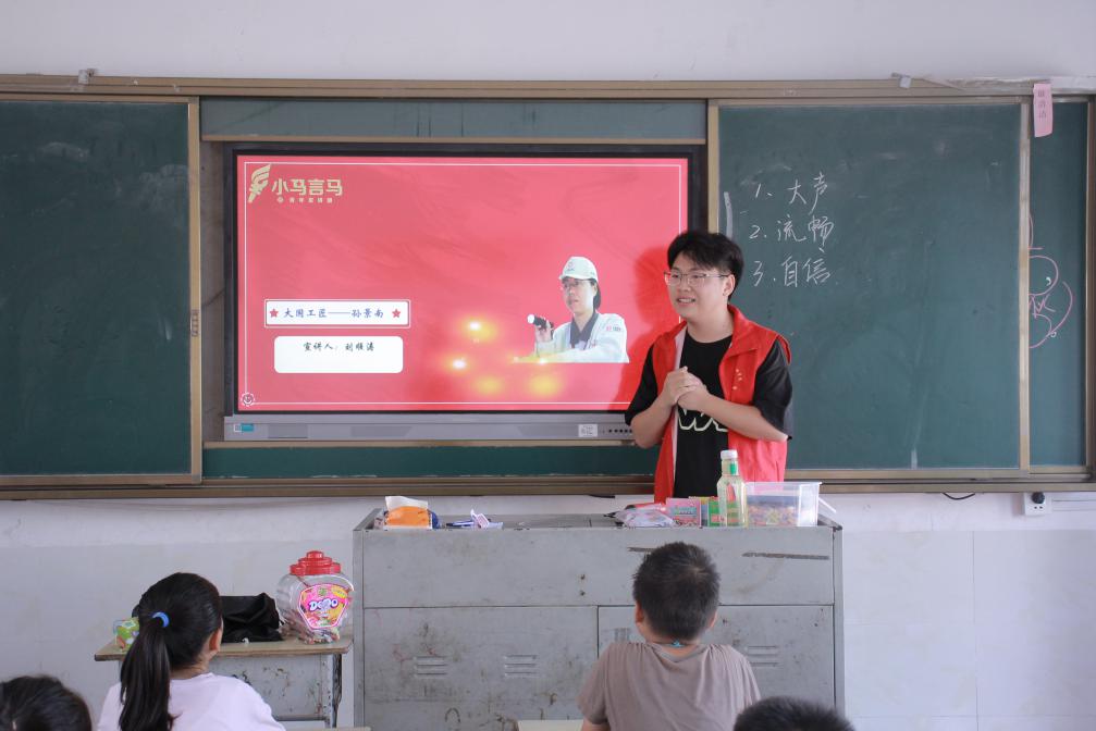 抵达公司后,团队成员与孩子们在略显拘谨的氛围中相识,队员们首先进行了热情洋溢的自我介绍。轮到孩子们时,许多小脸庞上写满了紧张与不安,他们走上讲台,眼神躲闪,自我介绍简短而羞涩。这初次的声音交流,正是许多乡村孩子社交恐惧的直观体现,也成为了支教团队首日课程设计的起点。