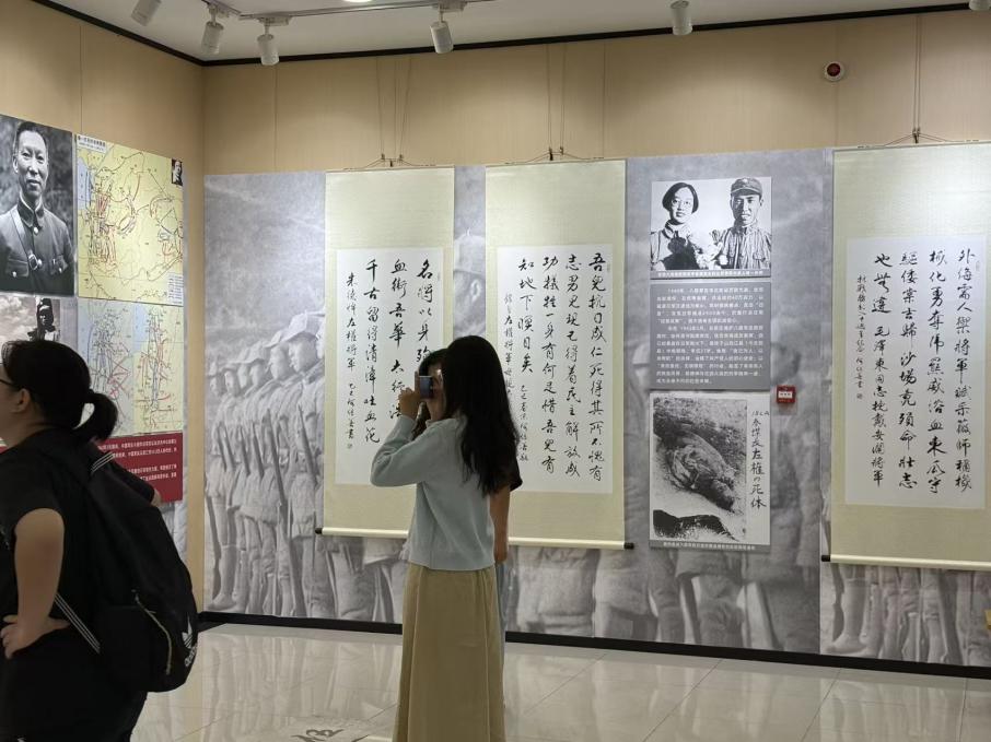 同学们在书法作品前驻足观看,神情专注。在语音导览和讲解员的引导下,大家凝神聆听,从笔墨间感受革命先辈的家国情怀,在红色文化浸润中筑牢理想信念。当听到“一寸山河一寸血”的创作背景时,有人不禁挺直腰背;看到记录战役的诗词手稿,同学们低声交流起课本中的抗战历史;面对“少年强则国强”的题字,目光中既有对先辈的追思,也有对自身使命的思考。