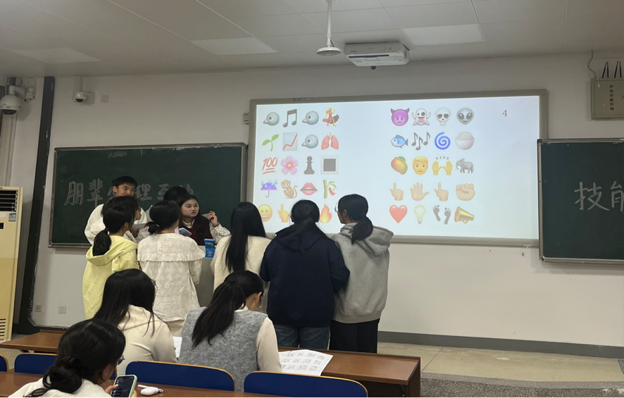 “笔试筑基”环节围绕心理学基础及朋辈咨询原则展开,各队沉着应答,展现出扎实的理论功底。随后的“竞答比拼”将比赛推向高潮,选手们通过抢答小程序踊跃参与。“趣味猜题”环节中,参赛者通过表情符号联想心理词汇,既考验了反应能力,也增强了比赛的趣味性与竞技性。整场比赛节奏紧凑,气氛活跃。梁慧老师也对同学们的积极表现给予充分肯定。