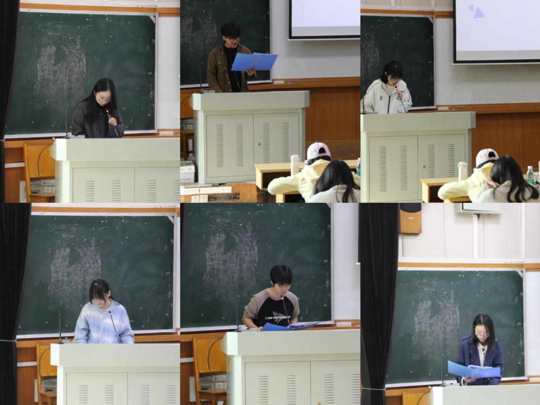 随后,院分团委副书记、员工会主席团成员以及分团委、员工会、融媒体宣传中心各部门负责人分别上台述职。他们从政治态度、道德品行、学习成绩、工作成效、纪律作风五个方面向员工代表进行汇报。各员工评审在听取述职汇报后,严格按照评审要求,采取线上匿名填写问卷的方式进行打分。