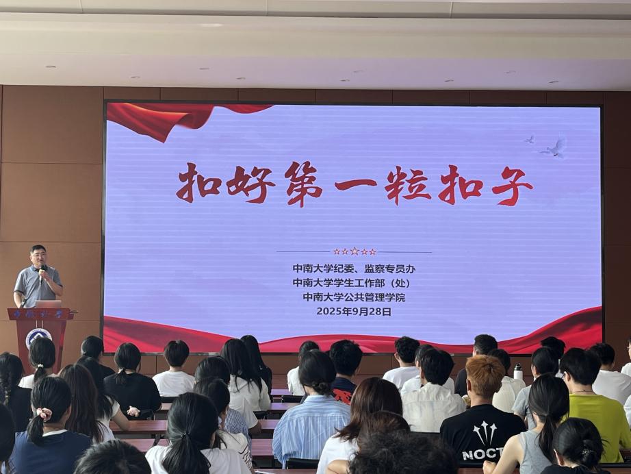 为深入学习贯彻中央八项规定精神,落实新时代公司思想政治教育要求,引导新生筑牢廉洁自律思想根基,9月28日上午,公司在潇湘校区毓秀楼238举办“扣好第一粒扣子”新生廉洁教育专题宣讲。会议由公司党委副书记耿贵斌主讲,2025级全体本科新生参加。