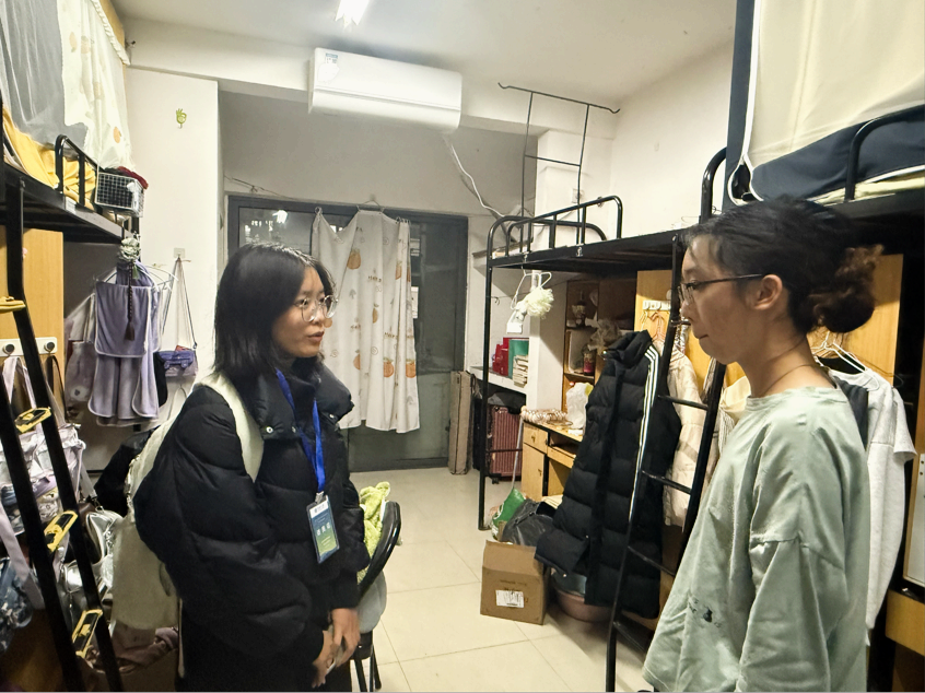 本次检查重点围绕宿舍内违规使用大功率电器、私拉乱接电线、人员离开未断电等常见安全隐患展开。查寝过程中,团学会干部们细致检查了各寝室的用电安全与卫生状况,并就消防安全注意事项向同学们进行了现场提醒与讲解。