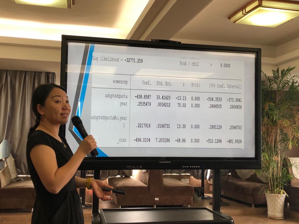 苏徐红副教授首先比较了多个国家议会中的女性代表性水平,在此基础上紧扣三个问题展开了系统的理论设计和严谨的统计学分析:1.配额制对提升女性代表性是否有效?2.配额制执行的哪些特性证明是有效的?3.配额制执行有效性的时间变化趋势是什么?苏徐红逐一回答了上述问题,指出了配额制对女性代表性的作用与反作用、开放机会与保证结果的政策差异性,进而剖析了逆全球化背景下平等取向政策的调整动向。同时,苏徐红副教授对当代中国政治领域中女性代表性的明显提高给予了肯定。