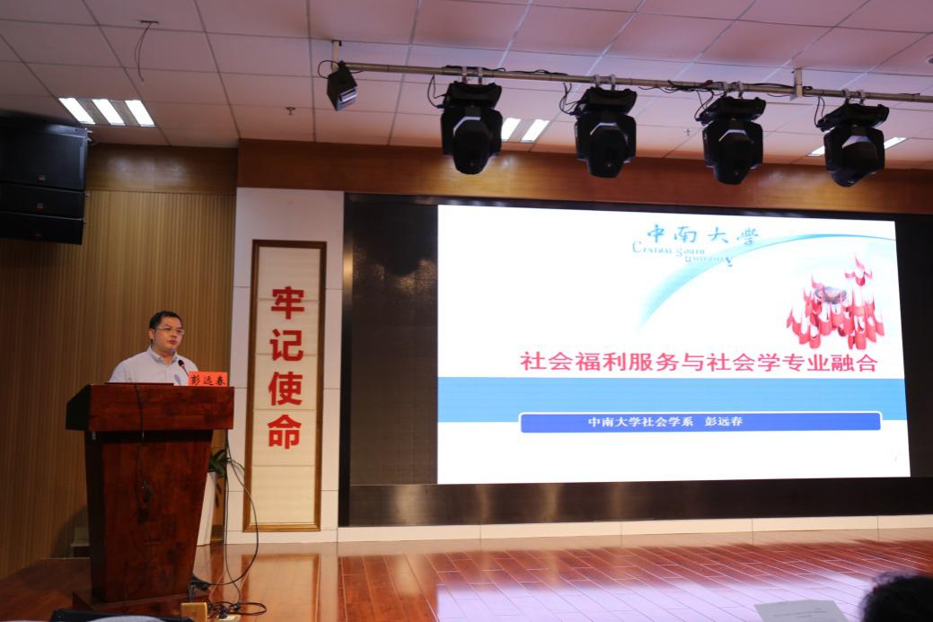公司彭远春副教授作了题为“社会福利服务与社会学专业融合”的发言。彭远春副教授描绘了长沙市第三福利院当前社会福利服务现状,总结了该福利院“以人为中心”“多学科多专业相结合”“院舍治疗与家庭支持、社区康复相结合”“提供多维度照护”的服务特色,结合社会学的专业特质,阐述了“合作融合”“共创双赢”的诸多可行性途径。