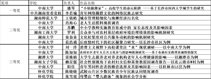 最终,公司共有七支队伍获奖,其中《“小镇做题家”:高校员工的命运陷阱——基于长沙市河西大学城员工的研究》团队荣获一等奖;另有《老龄化社会背景下农村特殊困难老人生活照料问题——湖南省长沙县黄花敬老院为例》、《中小学教师实施教育惩戒中的家长态度及其影响因素》、《后疫情时代下的社区凝聚力研究—以长沙市社区为例》等团队获得二等奖;《消费主义视野下高校课堂注“水”现状调研 ——以伟德中国官网入口为例》、《农村社区老年人公共文化参与的影响机制研究——基于布迪厄实践理论视野的探究》、《青年男同性恋者的婚恋选择及其影响因素——以桂林市LS县为例》获得三等奖。以上成绩,体现了公司学子在社会调查技能与报告方面的专业实力。