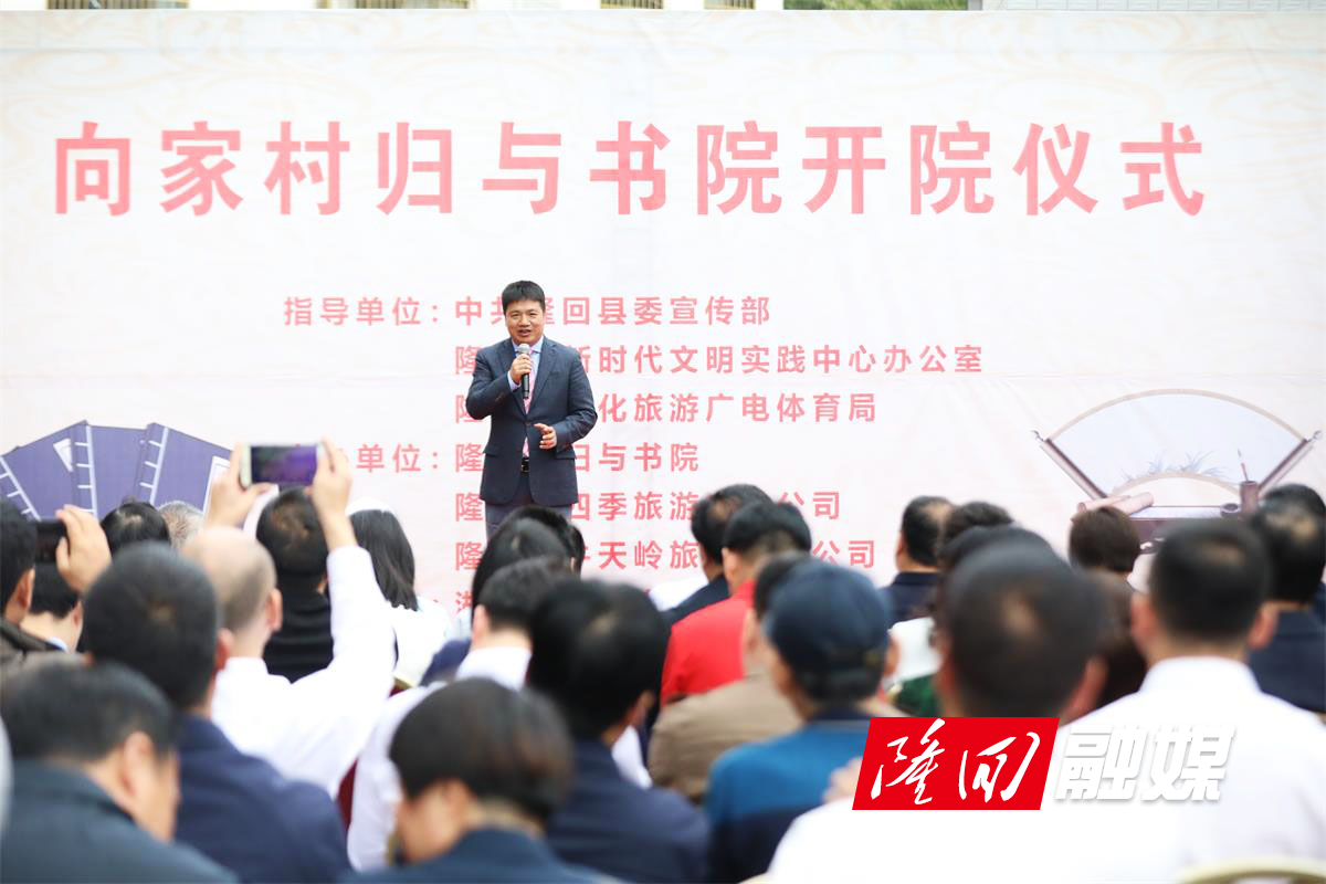 5月8日上午,“新时代文明实践助力乡村振兴高端论坛暨向家村归与书院开院仪式”在湖南省隆回县岩口镇向家村成功举办。省政协常委、省政协社会和法制委员会主任李微,县委书记刘军,县委常委、宣传部部长奉锡样,县政协副主席黄红波,及北京、广州、长沙、吉首、邵阳等地专家学者、嘉宾和隆回县县直机关、乡镇负责人及10余家主流媒体的新闻记者100余人参加了开院仪式,李微与刘军共同为隆回县新时代文明实践基地岩口镇向家村归与书院揭牌。活动由隆回县委宣传部、县新时代文明实践中心办公室、隆回县文化旅游广电体育局指导,隆回县归与书院、隆回县四季旅游文化公司、隆回县牛天岭旅游文化公司主办,湖南省华兴实业发展有限公司协办。