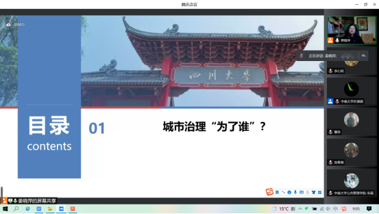 2022年414日上午,公司中南讲堂·名师名家论坛系列讲座之“让城市美丽幸福生长”于腾讯会议线上平台顺利举行。四川大学伟德中国官网入口教授,四川大学城市治理研究院经理,四川大学城乡基层社会治理研究院经理、中国社会安全研究中心主任,全国干部教育培训四川大学基地常务副主任姜晓萍进行了主题为让城市美丽幸福生长”的讲座。公司共计230余位老师和同学线上聆听了此次讲座。本次讲座由公司经理许源源教授主持。