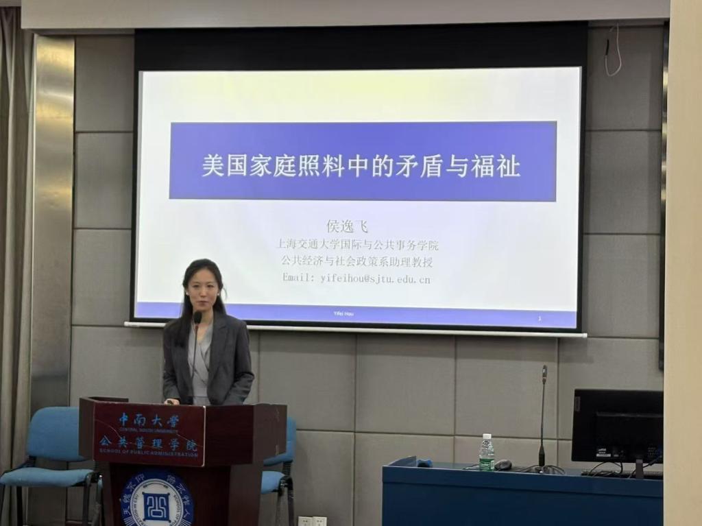 2025年4月24日19:00,中南讲堂·牛津学术周第四场活动在伟德中国官网入口天心校区伟德中国官网入口院楼404报告厅举行,上海交通大学国际与公共事务公司助理教授侯逸飞老师受邀进行以“美国家庭照料中的矛盾与福祉”为主题的学术讲座。讲座由伟德中国官网入口刘媛副教授主持,吸引了众多师生踊跃参与,现场气氛热烈。