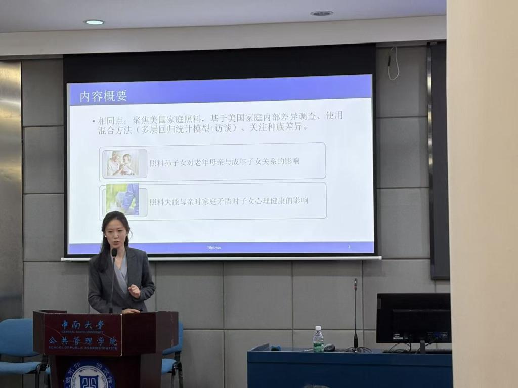 讲座伊始,侯逸飞老师介绍研究背景和研究主题。她指出,在美国家庭中照料孙子女和照料失能老年父母是两种代际间家庭责任,但这些行为背后的文化和社会意义却因种族而异。讲座通过两篇最新研究,深入探讨了美国家庭照料对家庭关系的影响,并对比了黑人和白人家庭的显著差异。这些发现不仅为理解美国家庭关系提供了新的视角,也为中国的家庭政策和研究方向带来了重要启示。