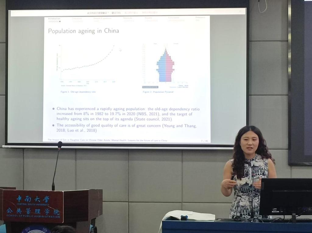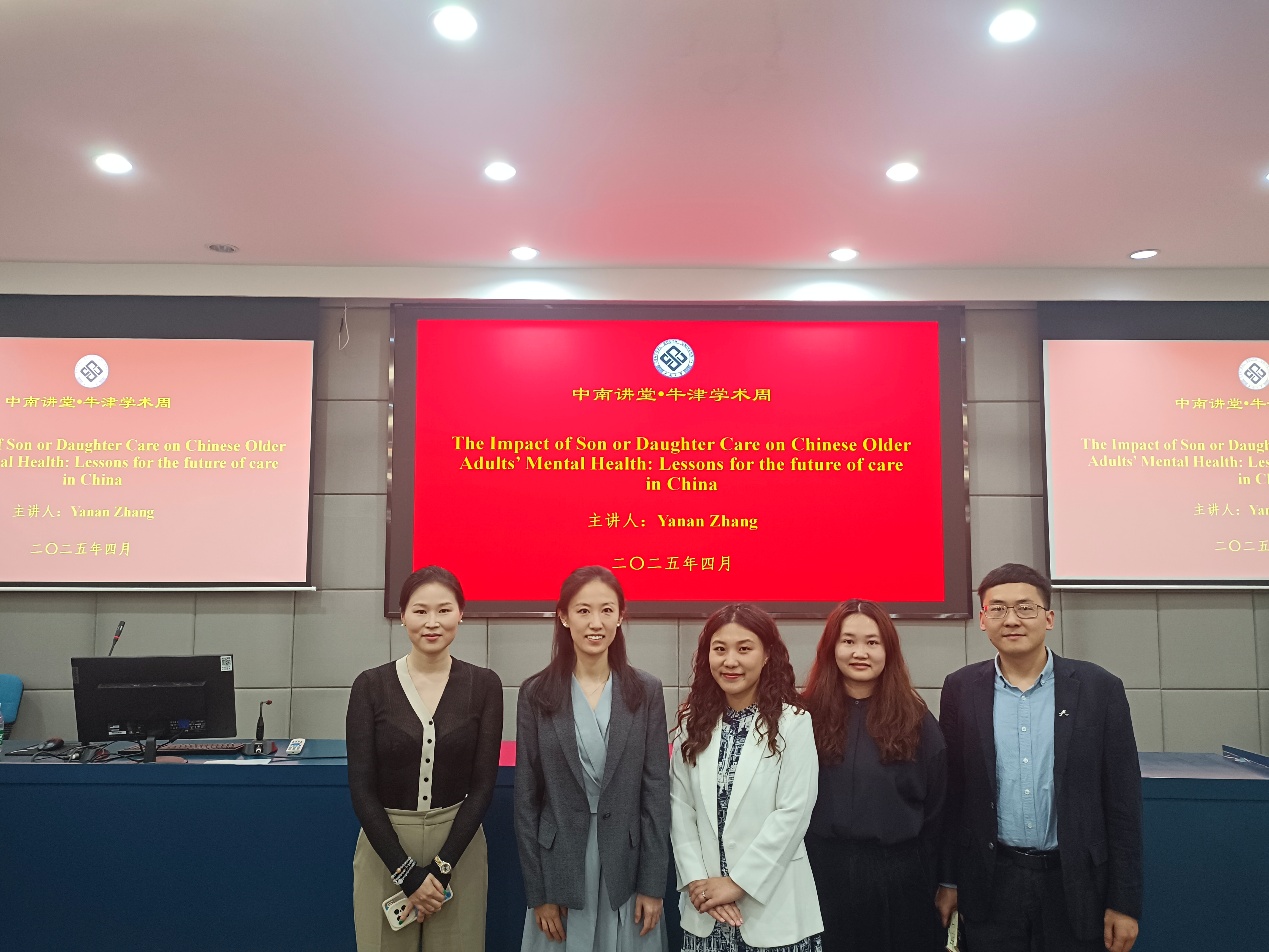 2025年4月24日14:30,中南讲堂·牛津学术周第三场活动在伟德中国官网入口天心校区伟德中国官网入口院楼404报告厅举行,牛津大学人口老龄化研究所高级研究员(Senior Research Fellow)张亚楠受邀进行以“The Impact of Son or Daughter Care on Chinese Older Adults’ Mental Health: Lessons for the future of care in China”为主题的学术讲座。讲座由伟德中国官网入口刘芷含副教授主持,吸引了众多师生踊跃参与,现场气氛热烈。