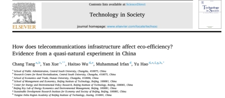 据近日公布的ESIEssential Science Indicators)数据库最新统计数据显示,由公司博士后唐畅为第一作者在SSCI一区期刊Technology in Society》上发表的论文“How does telecommunications infrastructure affect eco-efficiency? Evidence from a quasi-natural experiment in China”入选社会科学领域ESI全球Top 1%高被引论文(Highly Cited Papers)和热点论文(Hot Paper),该论文正式发表于20225月。